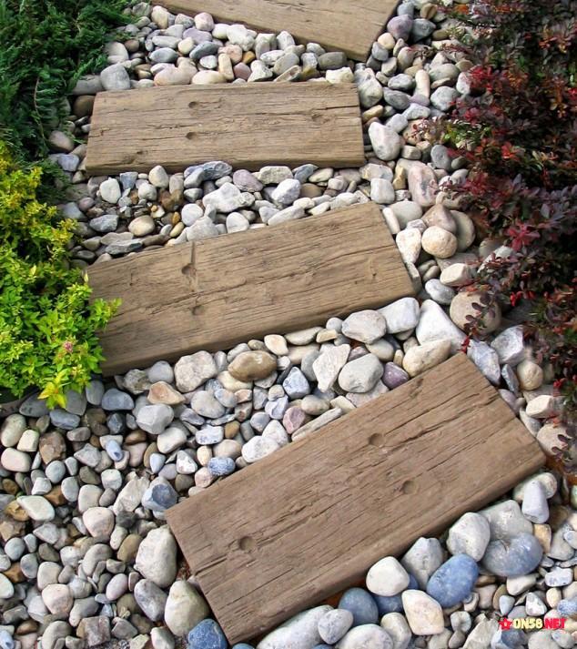 Using old tires in path design is maybe unseen but very creative and imaginative idea that will make your garden look one of a kind. Fill the tires with grass and surround them with broken bricks to create a really nice and complete look. Or, you can also use old glass bottles to shape your path in the garden. This is another creative idea that also gives an amazing final result.