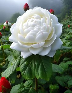 The juxtaposition of the icy backdrop and the vivid blossoms creates a scene of surreal enchantment, as if a realm of dreams has materialized before one’s eyes.