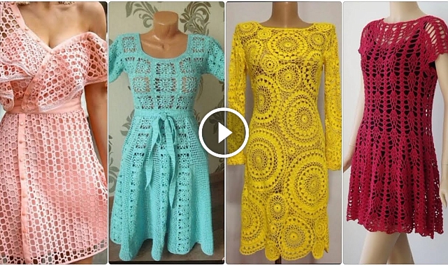is video me ap dakhe ge Beautiful and creative crochet handknit short midi dress/Ctochet saktter pattern designs for ladies