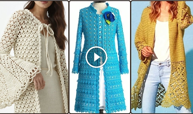 is video me ap dakhe ge Gorgeous and Trendy crochet handknit long cluster jacket pattern designs for woman